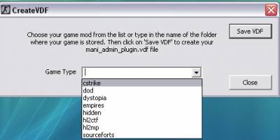 3) После того как вы закинули все четыре папки на сервер идем в (путь) --> D:\Server\cstrike\addons там вы увидете файл CreateVDF.exe кликаем левой кнопкой мыши на него два раза он открывается там будет рамочка нажмите на стрелочку которая смотрит вниз и выберите cstrike скрин можно посмотреть ниже: